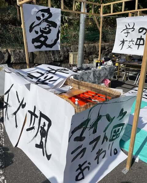 パフォーマンス用の大筆を使って、好きな言葉や文字を書く「大筆体験」を開催しました。