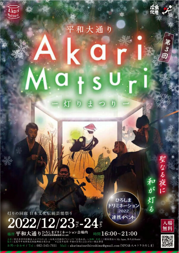 雪が舞う広島にて書道パフォーマンスを行いました。