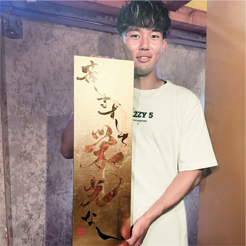 箔のもつ美しさや上品さに、書道ならではの力強さや繊細さを重ねることで、華やかさの中にも気品を感じさせる表現が生まれます。光の角度や時の経過によって色合いが変化していく様子は、まるで箔もまた書と同じように「生きている」かのようです。