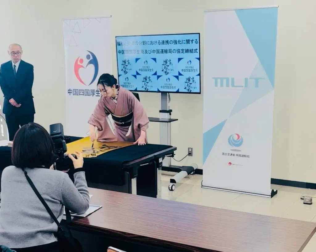 中国四国厚生局と中国運輸局が協定を締結される場にて、特別ゲストとして書を書かせていただきました。