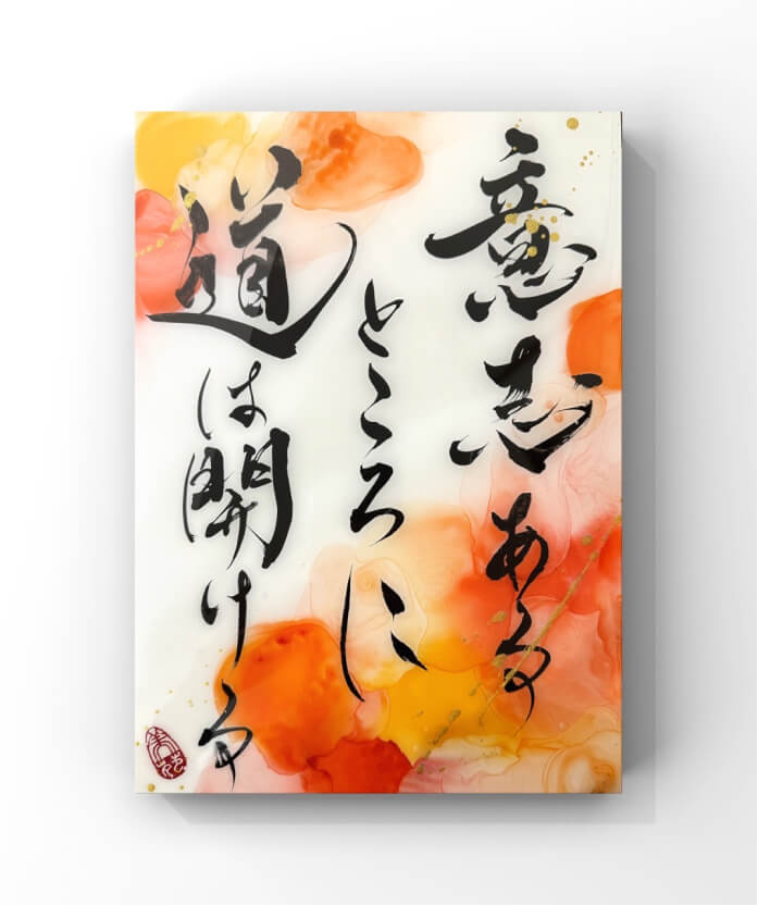 アルコールインクアートとアート書を掛け合わせたアルコールインク筆アート。